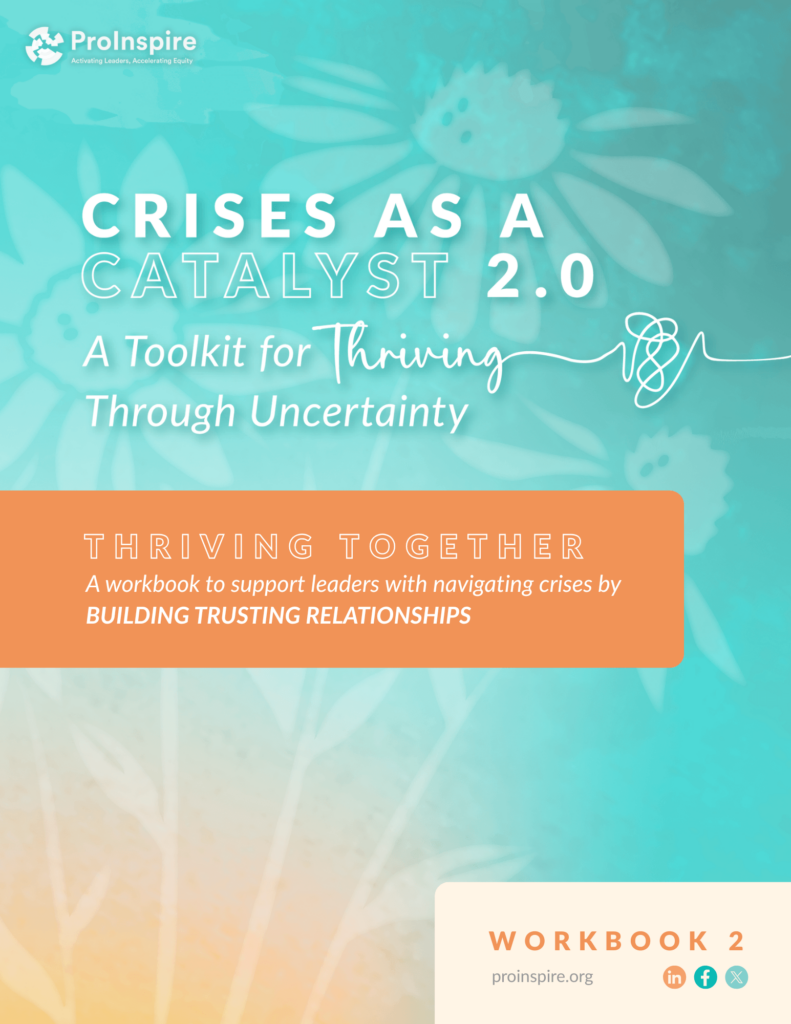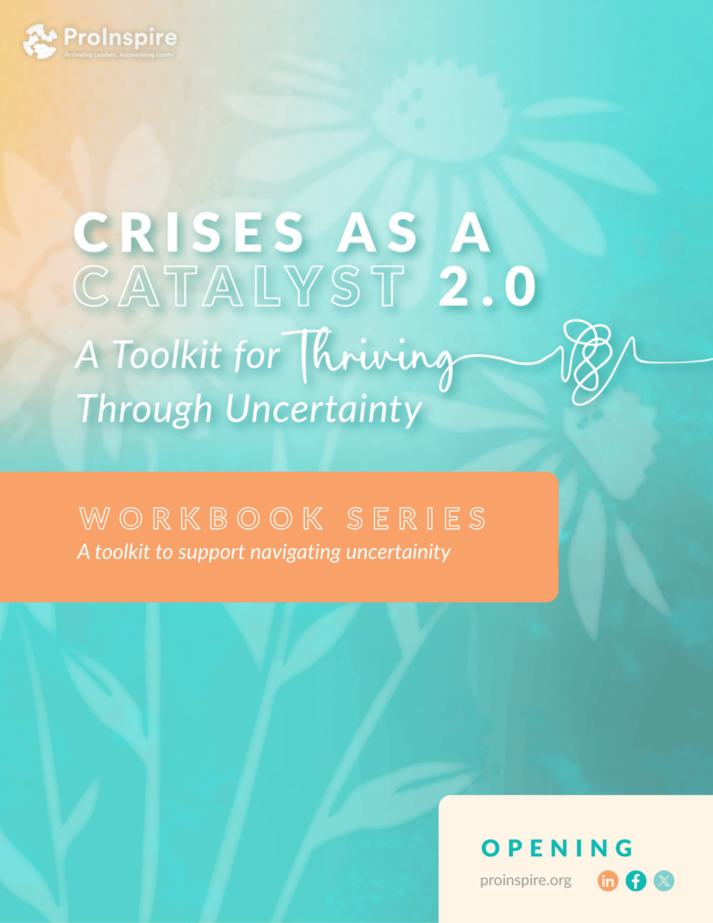The Crises as a Catalyst 2.0 Toolkit is a flexible, values-rooted resource designed to support nonprofit leaders, boards, funders, and community organizations as they navigate today’s intersecting crises. It can be used for self-reflection or team sessions. You can move through the workbooks however is most supportive to you.